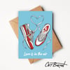 Hand illustrated by me and professionally printed on to 300gsm art paper. Perfect card for any sneaker fan, featuring the Airmax 1 og red
